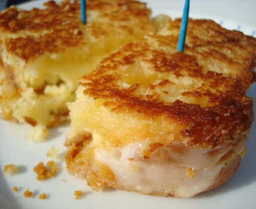 “Đừng tin vào bất cứ điều gì bạn nhìn thấy” là điều mà ai ai cũng nhẩm đi nhẩm lại vào ngày “nói dối”, nhưng đôi khi lại có những điều quá hấp dẫn xung quanh. Với hình dạng y hệt một chiếc bánh sandwich pho mát nướng, bánh cake pho mát nướng đem lại cho người ăn một cảm giác vô cùng thú vị và lạ miệng khi thưởng thức. Chỉ với 2 lát bánh cake, một lát pho mát kẹp vào giữa, rồi nướng trên chảo từ 1-2 phút là bạn đã có ngay món bánh cake pho mát nướng ngon tuyệt rồi. Để “trò lừa” thêm hoàn hảo, nhiều người cũng cắt các lát bánh cake thành hình tam giác để sao cho thật giống với những chiếc sandwich.