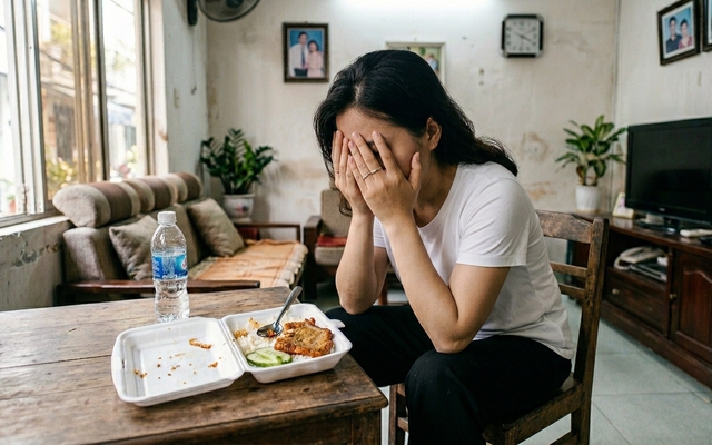 Đến 4 giờ, đứa con lại gọi điện hỏi liệu chị có thể đợi đến lúc tan làm về rồi hãy ăn không, vì nó đang ở ngoài, tận 5-6 giờ mới về đến nhà.