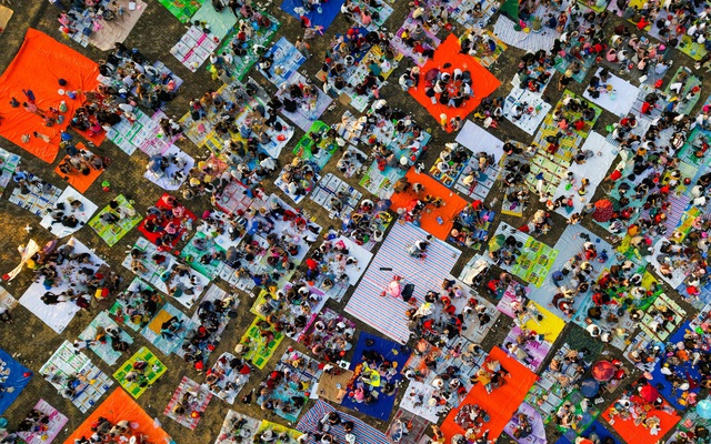 Khung cảnh đông nghịt người trải bạt "cắm trại" chờ tham dự hội xuân