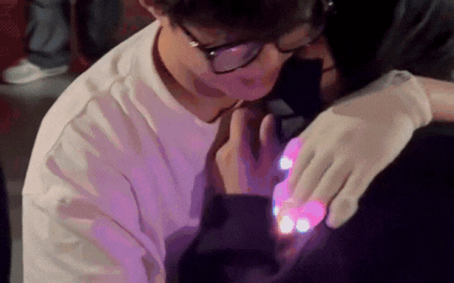 Cả hai ôm nhau trong sự hào hứng, chúc phúc của bạn bè