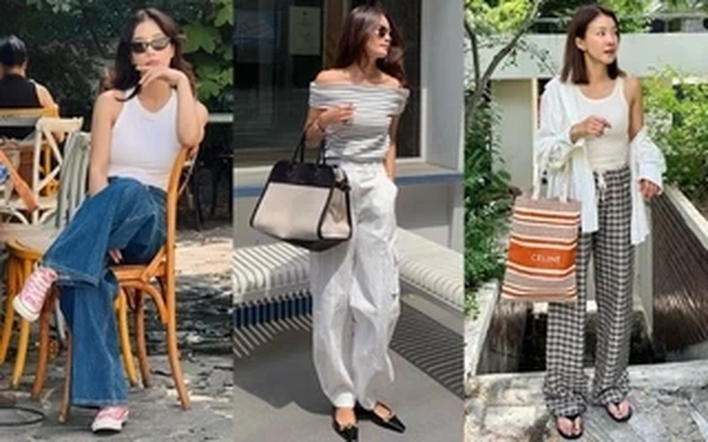 Tâm điểm của bộ cánh trên chính là quần ống suông họa tiết kẻ ô. Khi kết hợp item này cùng với áo tank top, sơ mi trắng khoác ngoài, chị em có được bộ trang phục hài hòa. Túi tote và dép xỏ ngón là những món phụ kiện không thể hoàn hảo hơn để kết lại bộ cánh.
