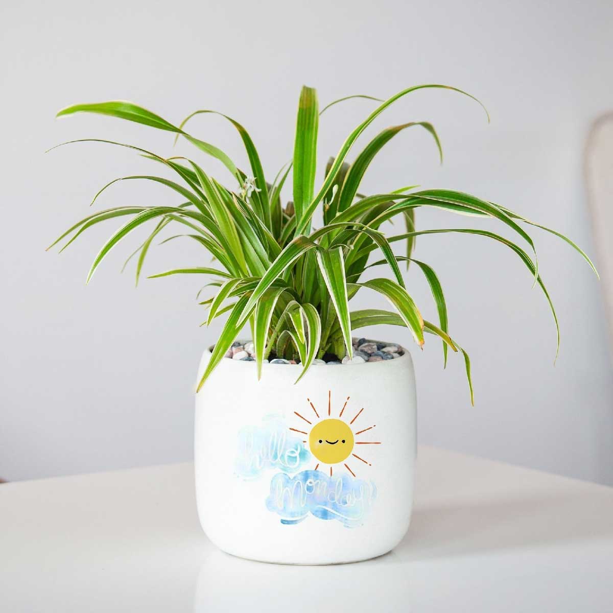 Lan chi thường được đánh giá cao nhờ khả năng loại bỏ một số chất ô nhiễm phổ biến trong không gian kín như formaldehyde hay xylene. Cây cũng khá dễ chăm, thỉnh thoảng còn cho hoa trắng nhỏ, tạo điểm nhấn nhẹ nhàng trên bàn hoặc kệ làm việc.
