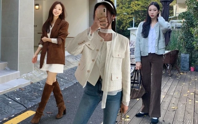 Trong khi áo trắng và quần jeans xanh rất tươi tắn, trẻ trung thì áo khoác vải tweed tạo điểm nhấn sang trọng, yêu kiều cho tổng thể. Bộ trang phục càng trở nên long lanh hơn nhờ các món phụ kiện như khuyên tai, dây chuyền ngọc trai… Bộ cánh này vô cùng phù hợp để diện khi hẹn hò buổi tối, hoặc mặc đi cà phê sang chảnh.