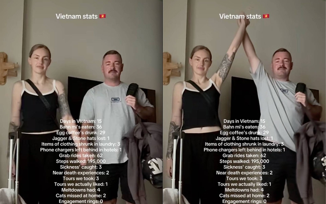 15 ngày ở Việt Nam, hai vị khách Tây đã gom đủ mọi cung bậc cảm xúc - từ vui vẻ, bất ngờ, khủng hoảng nhẹ cho đến "ăn chơi hết cỡ". Thay vì chỉ đăng ảnh check-in, họ chọn cách tổng kết chuyến đi theo phong cách hài hước: liệt kê toàn bộ những điều đã trải qua bằng con số. Và loạt con số đó đã khiến cư dân mạng Việt Nam… bật ngửa.