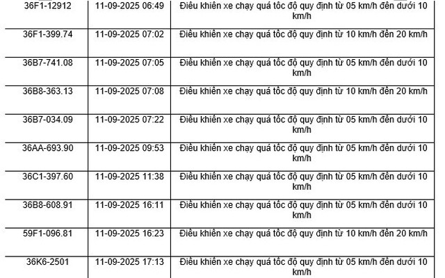 Trong khoảng thời gian từ ngày 1/9/2025 đến ngày 15/9/2025, tại Quốc lộ 1, lực lượng Cảnh sát giao thông - Công an tỉnh Thanh Hóa đã ghi nhận 40 trường hợp xe máy vi phạm lỗi chạy quá tốc độ qua hệ thống giám sát và phạt nguội.