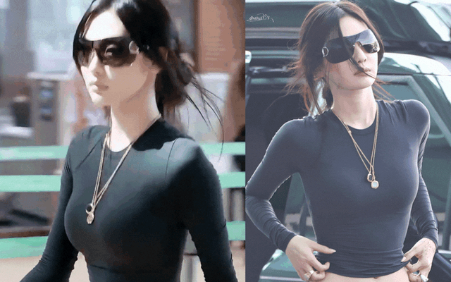 Ningning xuất hiện với chiếc áo thun tay dài ôm sát đến từ thương hiệu Skims, chất liệu mềm mịn giúp tôn trọn đường cong cơ thể. Nữ idol khéo léo phối cùng quần ống suông cạp thấp, để lộ nhẹ lớp ren nội y phía trên – một chi tiết nhỏ nhưng tạo nên điểm nhấn quyến rũ, tinh tế và đầy tò mò. Hoàn thiện tổng thể, cô lựa chọn kính mát bản to, dây chuyền vàng đeo layer và nhẫn to bản, mang đến vẻ ngoài sang chảnh, hiện đại.