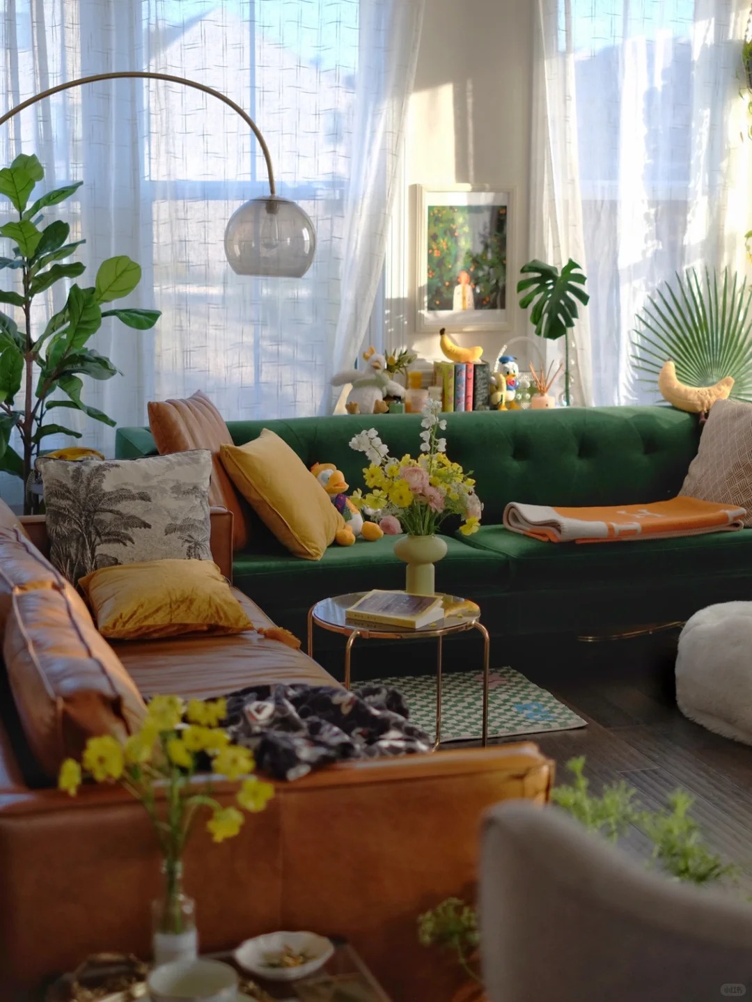 Trong phòng khách nên ưu tiên cây lá bản rộng, tán mềm vì tạo cảm giác đằm và yên. Quá nhiều cây lá kim, lá nhọn khiến góc nhìn sắc gắt, dễ sinh khẩu khí trong nhà. Nếu thích cây dáng thanh, hãy phối cùng cây lá to để cân bằng.