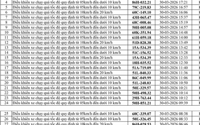 Công an tỉnh Lâm Đồng đã công bố danh sách các phương tiện vi phạm lỗi chạy quá tốc độ trong tuần đầu tháng 4/2026.