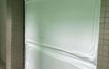 Nhân viên được phân công sử dụng Tấm xốp (còn gọi là tấm polystyrene) để che phủ hoàn toàn cửa sổ kính của các căn hộ nhằm ngăn cát và sỏi rơi vào cửa sổ trong quá trình thi công. Sau khi hoàn thành việc bảo vệ cửa sổ kính, các cạnh của cửa sổ sẽ được đục.
