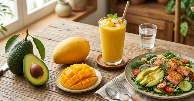 Ăn trái cây giàu dinh dưỡng như bơ và xoài giúp bảo vệ sức khỏe - Minh họa AI: Thu Anh