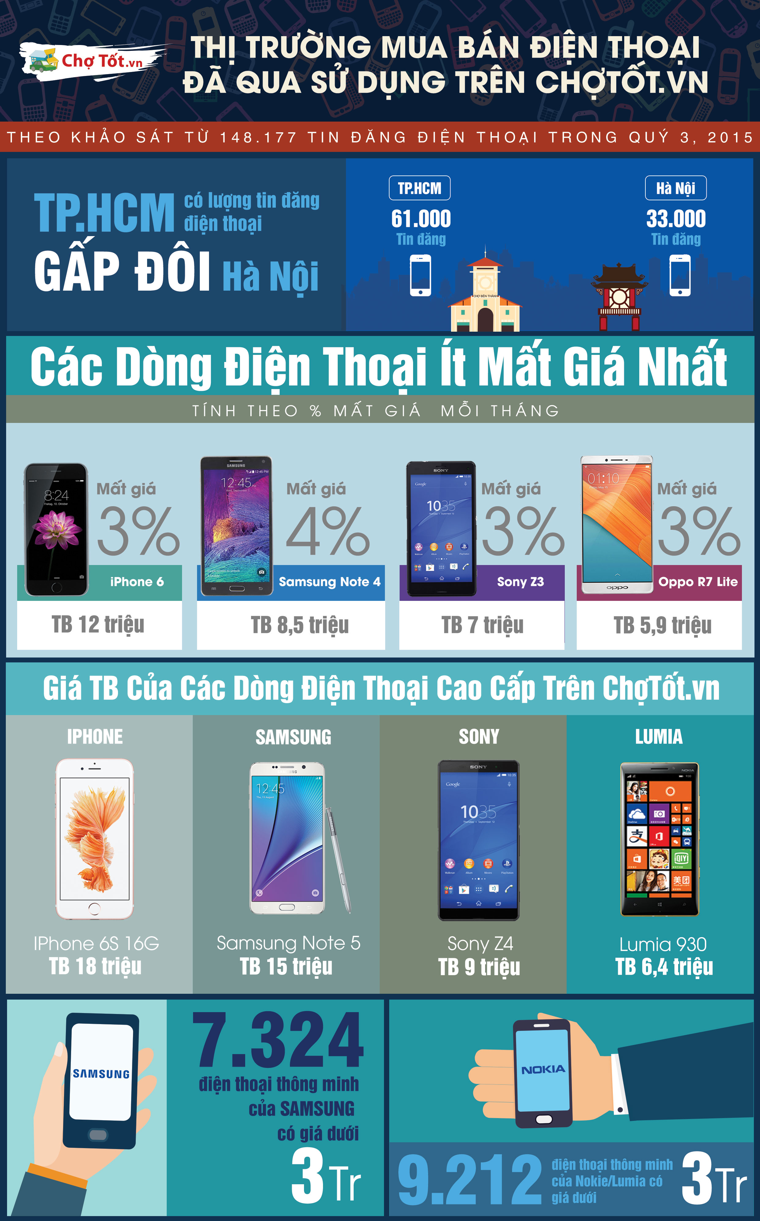Hãy cùng điểm qua một vài thông tin thú vị về thị trường mua bán điện thoại đã qua sử dụng trên ChợTốt.vn.