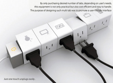 Ban đầu nhìn có vẻ phức tạp, nhưng chiếc ổ cắm điện Multi-Tab sẽ rất hữu dụng cho người dùng thường xuyên làm việc với dây dợ lằng nhằng. Sản phẩm mới bố trí từng vùng cắm điện chuyên dụng cho từng model riêng như màn hình, sạc pin điện thoại, bóng đèn, quạt mát…