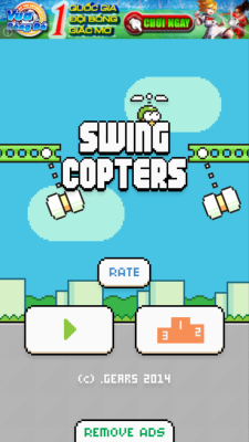 Flappy Bird, lập trình viên Đông Nguyễn tiếp tục cho ra mắt trò chơi tiếp theo của anh mang tên Swing Copters cho smartphone. Vẫn sở hữu thiết kế cùng cách chơi một tay đơn giản, thế nhưng Swing Copters được đánh giá khó hơn nhiều so với