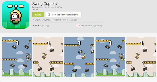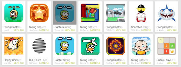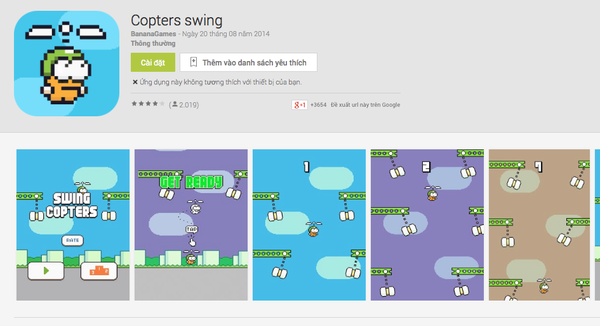 Một ứng dụng nhái Swing Copters với giao diện cùng tên gọi giống hệt phiên bản gốc.
