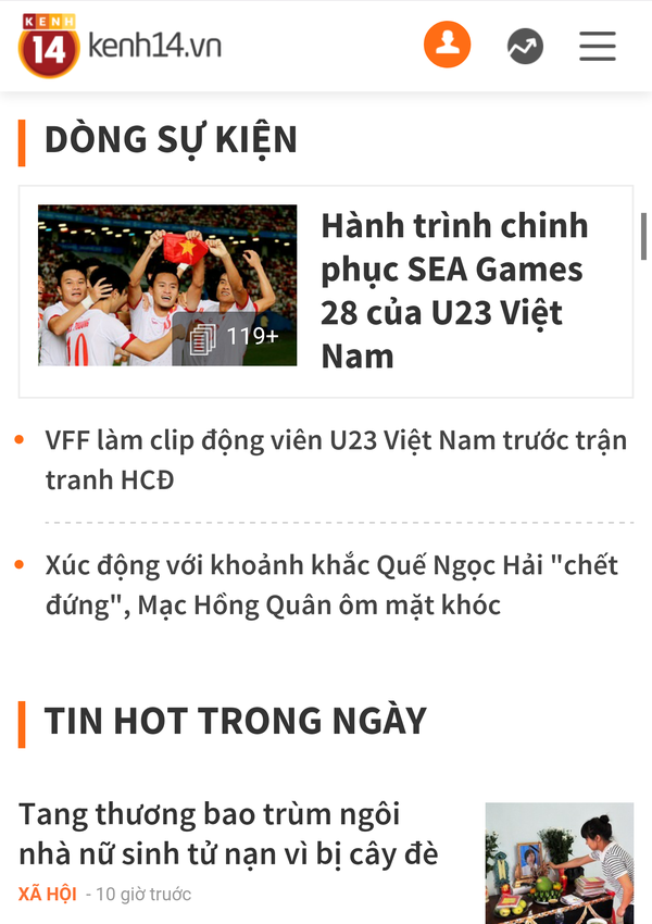 Thanh công cụ phía trên được thu gọn lại thành các biểu tượng bao gồm quản lý tài khoản VietID, dòng tin mới cũng như thanh công cụ chính giúp độc giả theo dõi, tùy chỉnh được các mục theo dõi hoặc các tiện ích khác từ Kenh14.