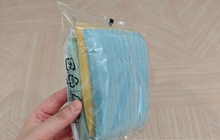 Một túi gồm ba miếng rửa bát nhiều màu sắc. Chất liệu mềm hơn so với vải sợi cá, nhưng vẫn làm sạch dầu mỡ rất hiệu quả. Dùng xong có thể giặt nhanh, khô nhanh, vài tuần thay một cái cũng không hề tốn kém.