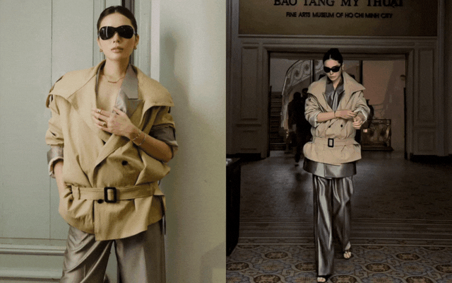 Khoác lên mình bộ đồ khá khó nhằn, Kỳ Duyên vẫn khoe trọn vóc dáng thanh thoát cùng tỷ lệ cơ thể chuẩn chỉnh. Mỹ nhân sinh năm 1996 diện bộ suit lụa bóng, bên ngoài layer 1 chiếc trench coat dáng lửng. Dù đều là những item có phom dáng rộng nhưng nhờ chiều cao nổi bật, nàng hậu hoàn toàn "khớp vai" một cách xuất sắc. Cô lựa chọn các phụ kiện như kính râm, đôi heels hở mũi màu đen để hoàn thiện tổng thể. Kỳ Duyên tăng thêm vibe quite luxury với tóc búi gọn gàng, layout makeup tông nude và trang sức tinh giản.