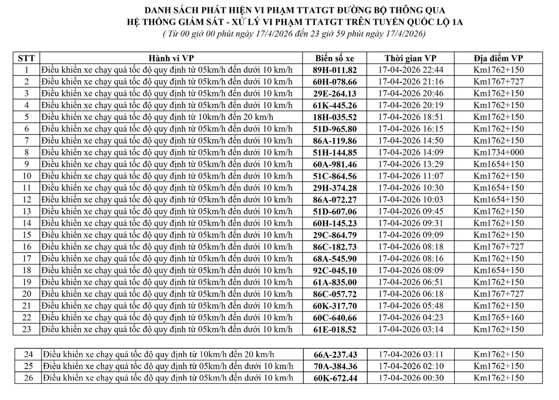 Phòng Cảnh sát giao thông Công an tỉnh Bắc Ninh đề nghị chủ phương tiện, người vi phạm chủ động tra cứu, chấp hành việc xử lý theo quy định. Đồng thời, khuyến cáo người dân nghiêm chỉnh tuân thủ quy định về tốc độ, chú ý quan sát biển báo giao thông, điều khiển phương tiện an toàn, góp phần phòng ngừa tai nạn và bảo đảm trật tự, an toàn giao thông trên địa bàn.