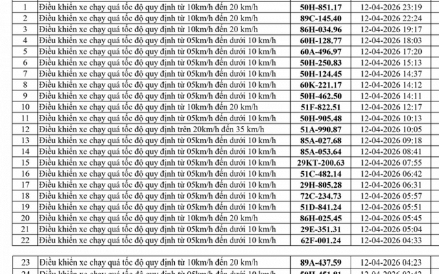 Phòng Cảnh sát giao thông Công an tỉnh Lâm Đồng thông báo, trong tuần từ ngày 12/04/2026 đến ngày 20/04/2026, đã phát hiện 247 trường hợp vi phạm trật tự an toàn giao thông - lỗi chạy quá tốc độ qua hệ thống camera giám sát giao thông và phương tiện thiết bị kỹ thuật nghiệp vụ.