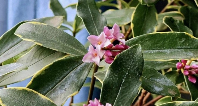 Thụy hương gây ấn tượng ngay từ cái nhìn đầu tiên với lá xanh viền vàng nổi bật, trông giống như được dát một lớp ánh kim. Khi ánh nắng chiếu vào, tán lá trở nên rất bắt mắt, tạo cảm giác sang trọng dù cây không quá lớn. Đến mùa hoa, cây nở từng chùm hoa nhỏ màu tím đậm hoặc hồng tím. Hoa không quá lớn nhưng mùi thơm rất đậm, có thể lan tỏa khắp ban công hoặc cả căn phòng gần đó.