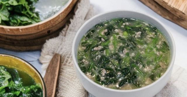 2. Canh rau cải bó xôi thịt băm - Bảo vệ gan và não, làm ấm dạ dày