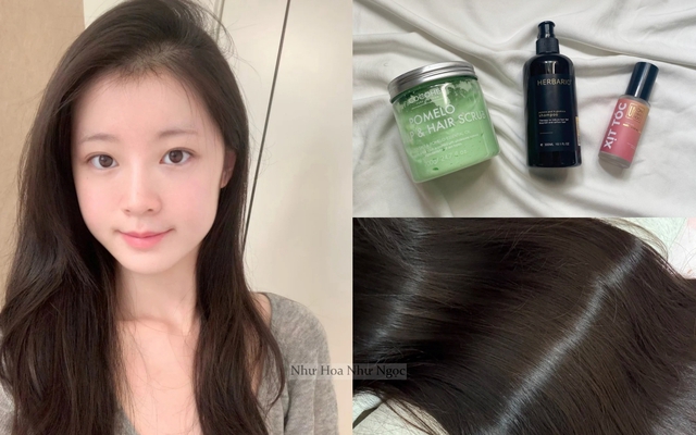 Điểm tôi thích là Herbario có thể dùng độc lập, không cần thêm dầu xả vẫn mượt. Nhưng vào những ngày tóc khô hoặc phải sấy nhiều, tôi thường ủ thêm kem dưỡng tóc để tăng độ bóng. Sau khoảng 1 tháng, tóc con mọc tua tủa ở đường ngôi và quanh trán - minh chứng rõ ràng nhất cho việc da đầu đã thực sự khỏe mạnh hơn.