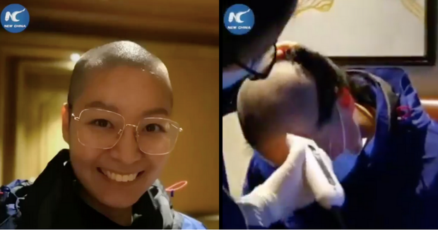 Một nữ y tá tại Vũ Hán cạo sạch đầu để thuận tiện trong công việc (Ảnh: Xinhua)