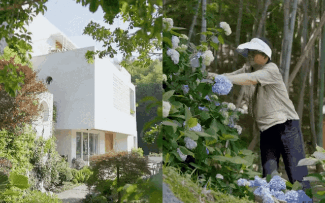 - Mẹ thích trồng hoa nên phía sau nhà có hơn 2.000 cây cẩm tú cầu cùng nhiều cây ăn trái