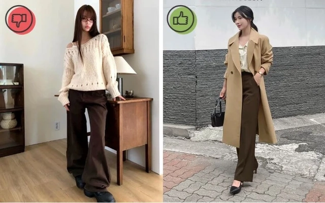 Ngoài ra, chất liệu cũng là yếu tố quan trọng: quần vải dày cứng sẽ giúp phom dáng đứng hơn, còn quần nỉ hay quần len mềm dễ khiến tổng thể trở nên "xuề xòa". Một chút tinh chỉnh nhỏ trong lựa chọn chất liệu và độ dài cũng đủ để bạn từ "lọt thỏm" trở nên cân đối, sành điệu hơn rất nhiều.