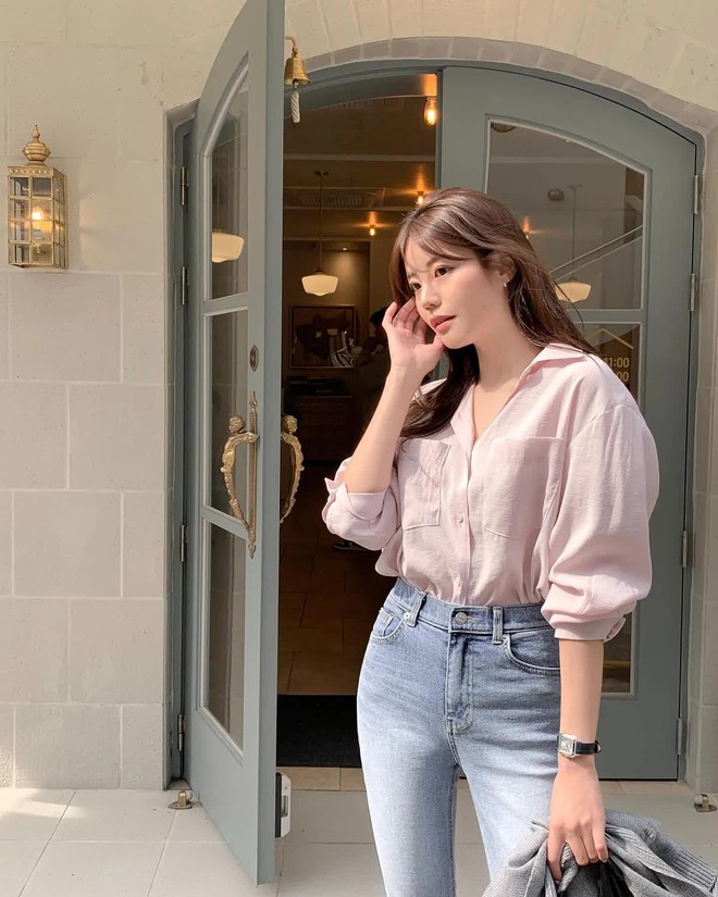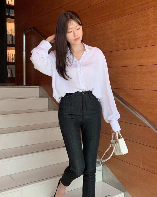 Lựa chọn cơ bản nhất chính là áo sơ mi trắng. Kiểu áo này là "bảo chứng" cho vẻ ngoài thanh lịch và trang nhã. Bên cạnh đó, áo sơ mi trắng cũng giúp set trang phục thêm tươi sáng, từ đó "hack" tuổi hiệu quả. Các nàng có thể kết hợp áo sơ mi trắng với mọi kiểu quần dài hoặc chân váy trong tủ đồ. Thế nhưng để chắc chắn ghi điểm phong cách, các công thức như áo sơ mi trắng + quần jeans, sơ mi trắng + quần âu hay sơ mi trắng + chân váy suông sẽ là gợi ý đáng tham khảo vì vừa chuẩn mốt, vừa sang xịn mịn.