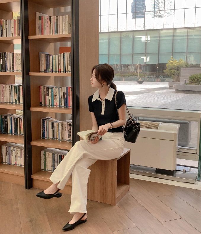 Nếu diện mãi giày cao gót, phong cách công sở của chị em dễ trở nên nhàm chán. Đôi khi, giày cao gót còn gây đau chân hay tạo cảm giác bất tiện khi di chuyển. Để làm mới phong cách công sở, chị em nên đi giày búp bê đơn giản. Mẫu giày này có sự trẻ trung, ngọt ngào nhưng không kém phần thanh lịch, rất phù hợp để diện tới công sở.