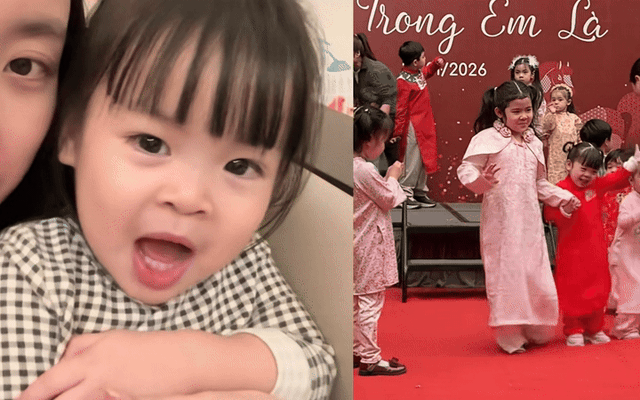 Theo đó, trong chương trình của trường, con gái Đỗ Mỹ Linh xuất hiện trên sân khấu trong trang phục áo dài truyền thống màu đỏ. Dù trình diễn trước đông người nhưng nhóc tỳ vẫn tỏ ra vô cùng dạn dĩ, bước đi tự nhiên, liên tục cười tươi và tương tác với mọi người xung quanh. Đỗ Mỹ Linh hài hước chia sẻ: “Lần đầu làm ‘vedette’ nên chưa biết kiểm soát cảm xúc, không biết có lần sau không”.