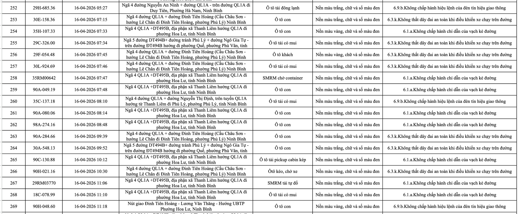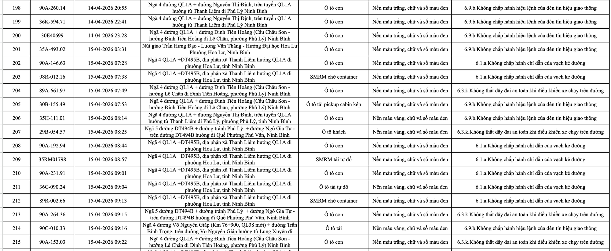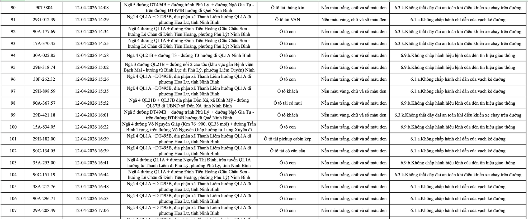 Sau đây là danh sách các phương tiện giao thông vi phạm: Xem tại đây!