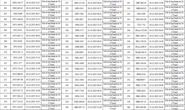 Danh sách chi tiết 260 trường hợp xe máy vi phạm như sau: