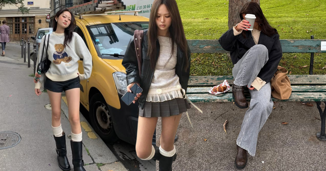 Chân váy ngắn kết hợp boots da luôn tạo nên một outfit đầy năng lượng: có chút nổi loạn, lại giữ được nét nữ tính rất "girl crush". Boots da giúp đôi chân trông thẳng và dài hơn, trong khi chân váy mini mang lại hiệu ứng trẻ trung, tươi mới. Bộ đôi này đặc biệt hợp cho những ngày xuống phố, cà phê cuối tuần hay chụp outfit check-in. Bạn có thể cân bằng độ "cool" bằng một chiếc sweater hoặc cardigan, áo khoác dáng rộng để vừa ấm áp vừa chuẩn vibe Hàn. Đây là set đồ mà gần như bất cứ cô nàng nào cũng có thể áp dụng, dễ mặc, dễ đẹp và siêu hút mắt.