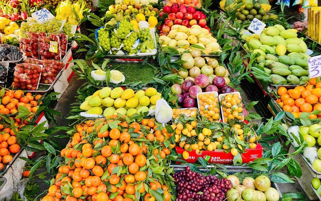 Tết là mùa tiêu thụ trái cây lớn nhất trong năm. Trái cây vừa để ăn hằng ngày, vừa để chưng bàn thờ, lại vừa để làm quà biếu. Do đó, các loại bưởi, cam, quýt, xoài, táo, nho, thanh long đều có xu hướng tăng giá rõ rệt. Đáng chú ý là cùng một loại trái cây, nhưng loại đẹp mã, quả to, màu sắc đều, thường có giá cao hơn rất nhiều so với loại thường. Có khi chênh lệch gấp rưỡi, thậm chí gấp đôi, chỉ vì phục vụ mục đích chưng Tết.