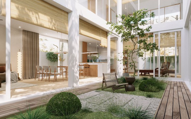 Những yếu tố này không nhằm tạo sự phô trương mà hướng đến việc xây dựng một môi trường sống cân bằng và hài hòa. Khách bước vào sẽ cảm nhận được sự yên bình và dễ chịu, từ đó dễ dàng hòa nhập vào không gian.