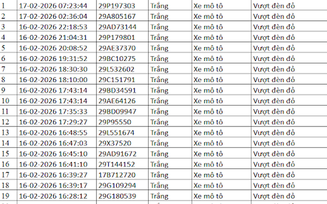 Theo Báo Lao Động, Cục Cảnh sát giao thông cho biết, camera AI thí điểm tại Hà Nội phát hiện nhiều trường hợp bị phạt nguội ngày Tất Niên, mùng 1 Tết. Trong số này có các xe vi phạm lỗi vượt đèn đỏ như sau: