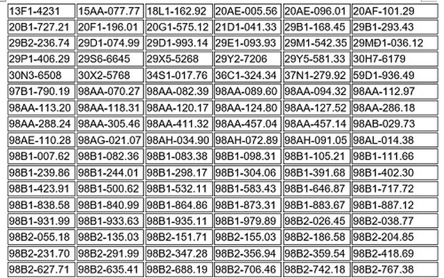 Danh sách các phương tiện vi phạm, bị phạt nguội như sau: