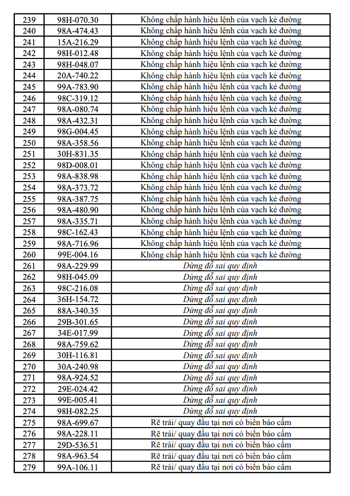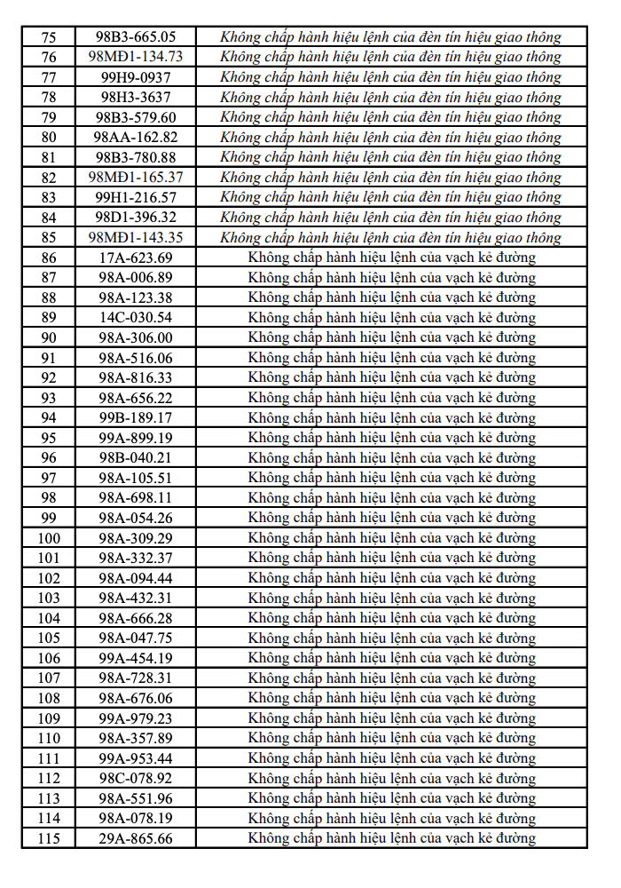 Mới đây, công an đã công bố danh sách các phương tiện vi phạm trật tự an toàn giao thông đường bộ tại một số tỉnh.