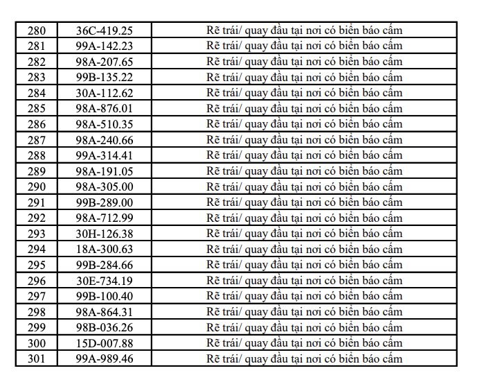 Bên cạnh đó, tại Bắc Ninh lực lượng chức năng cũng ghi nhận thêm 301 trường hợp vi phạm trật tự an toàn giao thông trong khoảng thời gian từ ngày 11/4 đến 17/4/2026, thông qua hệ thống giám sát và xử lý vi phạm tự động.