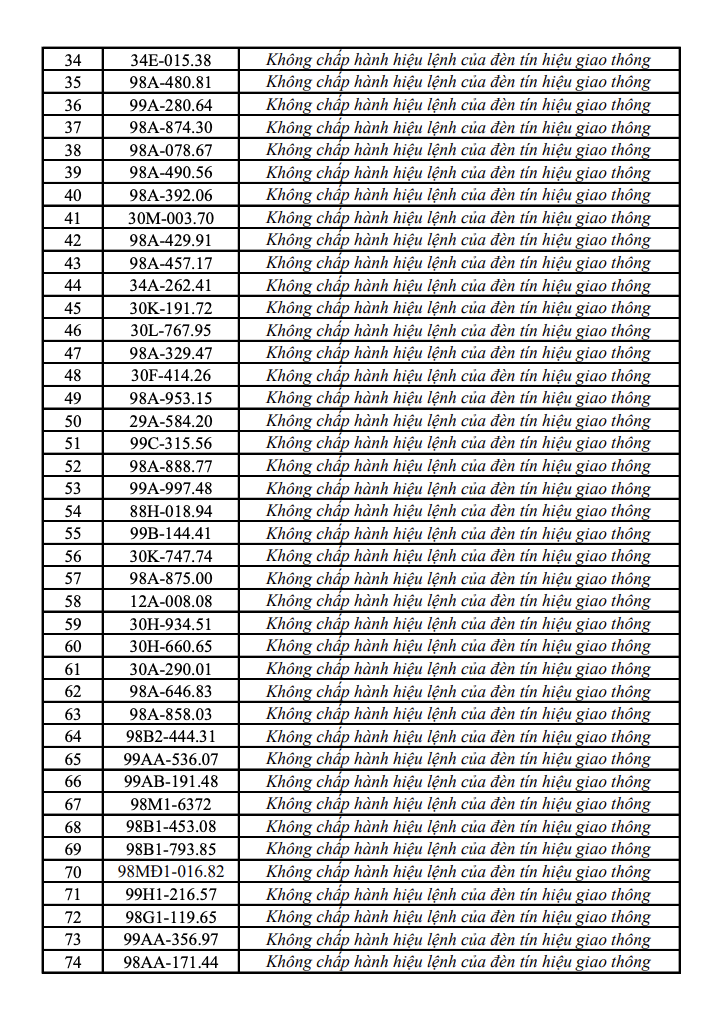 Đáng chú ý, không chỉ ô tô, xe mô tô cũng bị ghi nhận 22 trường hợp vượt đèn đỏ. Điều này phản ánh thực tế hệ thống camera giám sát hiện nay đã “phủ sóng” rộng, không bỏ sót hành vi vi phạm, bất kể loại phương tiện.