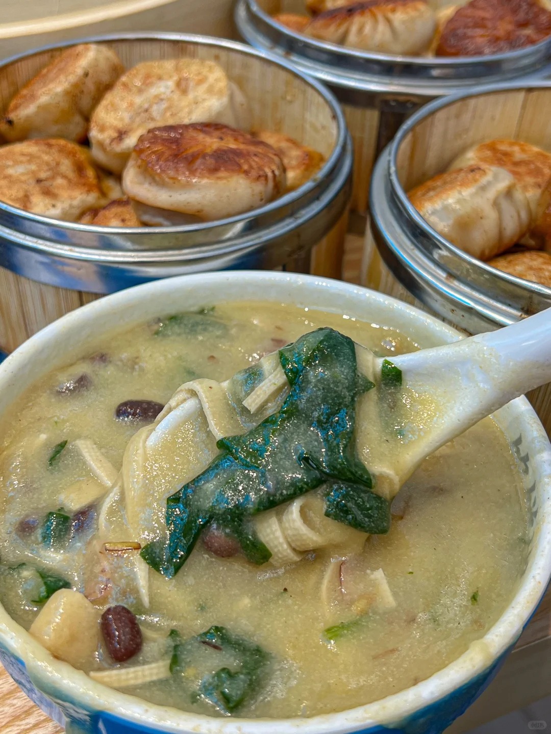 Tinh túy của món này nằm ở nghệ thuật nhào bột bằng nước sôi, thợ khéo tay dùng thanh cán chày gỗ miết ra đúng 18 nếp gấp đều tăm tắp. Nhân bên trong là thịt cừu tươi rói, quết cùng nước hoa tiêu, hành gừng cho đến khi dẻo quánh. Khi hấp chín, lớp vỏ mỏng như cánh ve ôm trọn khối thịt, cắn một miếng là nước ngọt tứa ra, thịt cừu thơm béo mà không hề bị hoi. Buổi sáng se lạnh, nhón một viên xíu mại, húp thêm ngụm cháo kê vàng óng, bạn sẽ hiểu thế nào là sự tận hưởng tao nhã của người Sơn Đông.