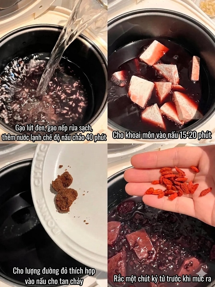 Cách nấu cháo gạo lứt đen, khoại môn và hoa mộc