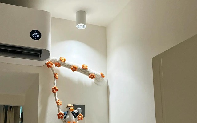 Các ống dẫn điều hòa thường là chi tiết lộ ra ngoài, gây cảm giác lộn xộn cho không gian. Một giải pháp đơn giản là sử dụng bộ ống bảo vệ, vừa che đi phần ống vừa thêm yếu tố trang trí. Khi lắp đặt, chỉ cần quấn dây cố định quanh ống, buộc nút và thêm phụ kiện trang trí, góc nhà sẽ trở nên gọn gàng và đồng bộ hơn với tổng thể nội thất.