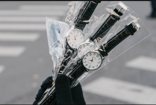 Sĩ tử được tặng đồng hồ trước khi vào phòng thi để căn chỉnh thời gian