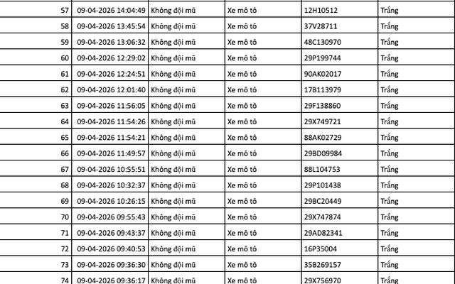 Danh sách phương tiện vi phạm phạt nguội ngày 10/4 bao gồm: