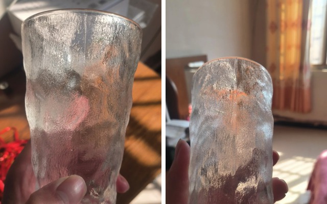 2. Tiếp theo là cốc thủy tinh dày kiểu “búa đập” kém chất lượng