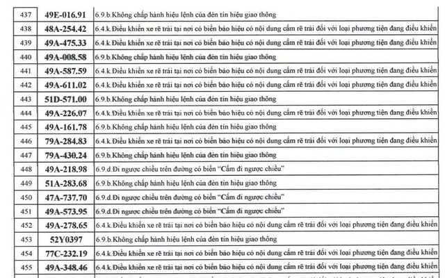 Các lỗi vi phạm chủ yếu: Không chấp hành hiệu lệnh của đèn tín hiệu giao thông; đi ngược chiều trên đường có biển “Cấm đi ngược chiều”; rẽ trái/phải tại nơi cấm rẽ trái/phải.