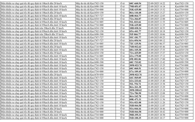 Công an tỉnh Lâm Đồng thông báo, từ ngày 21/9/2025 đến ngày 31/10/2025, thông qua thiết bị kỹ thuật nghiệp vụ, các tổ công tác của phòng CSGT đã phát hiện, ghi nhận bằng hình ảnh đối với tổng số 798 trường hợp phương tiện vi phạm quy định về tốc độ trên tuyến Quốc lộ 1A đi qua địa bàn tỉnh. Danh sách biển số vi phạm cụ thể như sau: